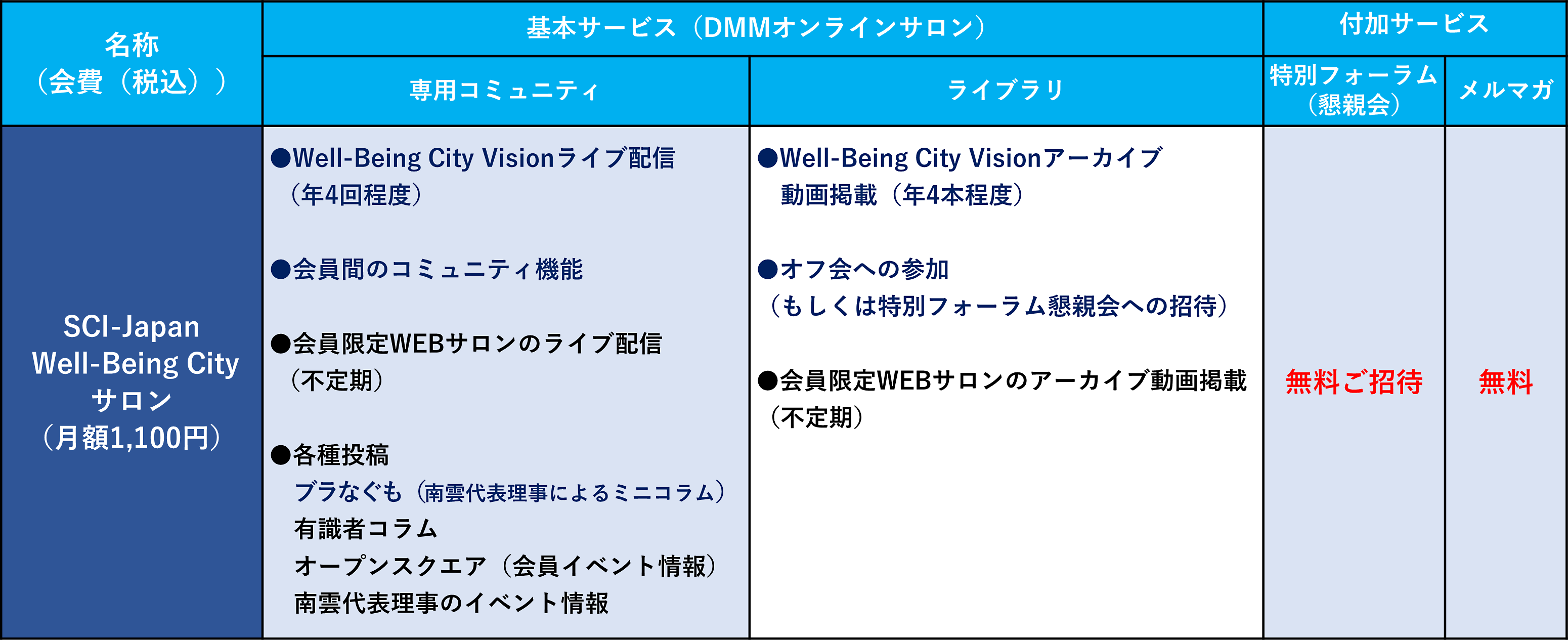 個人向け新サービス「SCI-Japan Well-Being City サロン」の開始について